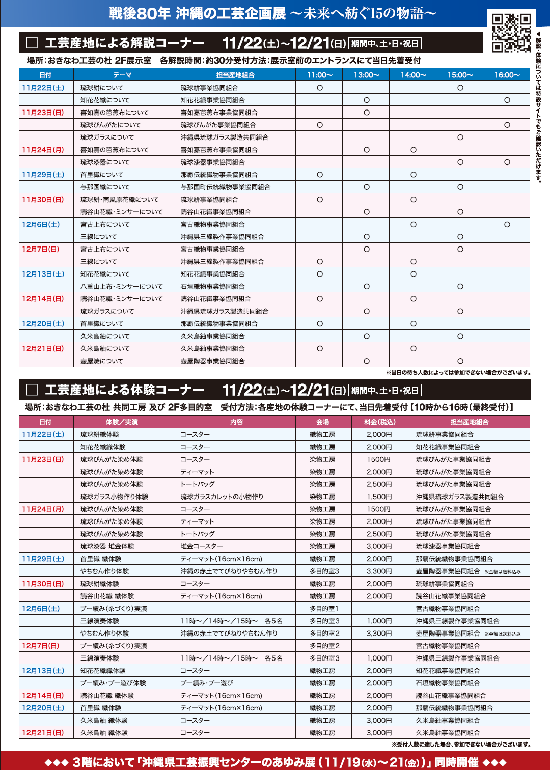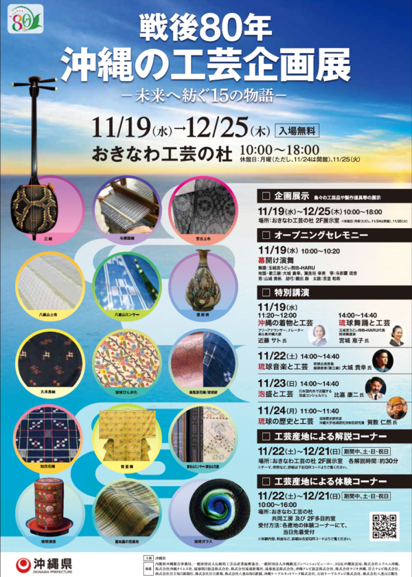 ご来場の皆様には、戦後80年にわたる平和の世、平和の地である沖縄で、継承・発展を続けてきた本県伝統工芸品の魅力と、平和を希求する「沖縄のこころ」を感じ取っていただきたいと思います。
